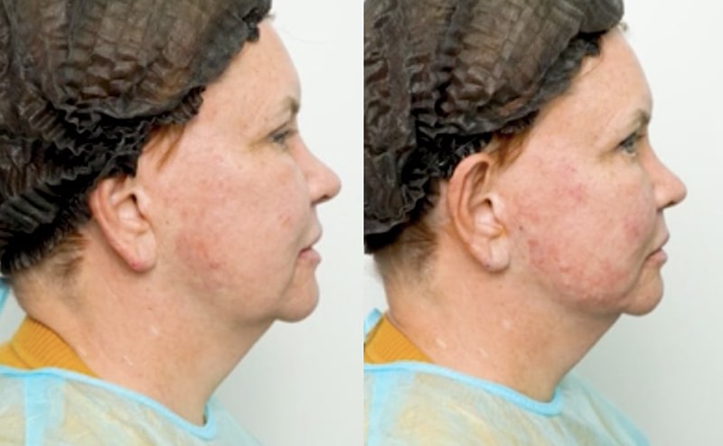 Достигнуты перемещение мягких тканей нижней трети лица из субментальной области, создание более чёткого контура нижней челюсти.